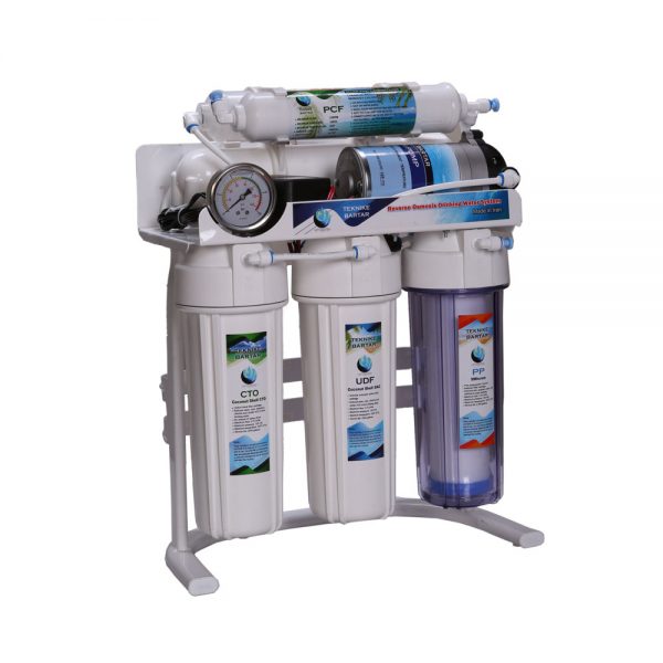 دستگاه تصفیه آب ۶ مرحله ای تکنیک برتر مدل Solina دارای سه مرحله پیش تصفیه و دارای ممبران ۷۵ گالن با تولید ۱۲ لیتر آب در ساعت است. وجود فیلتر قلیایی موجود در این دستگاه برای مناطقی مناسب است که PH آب آنها اسیدی است.